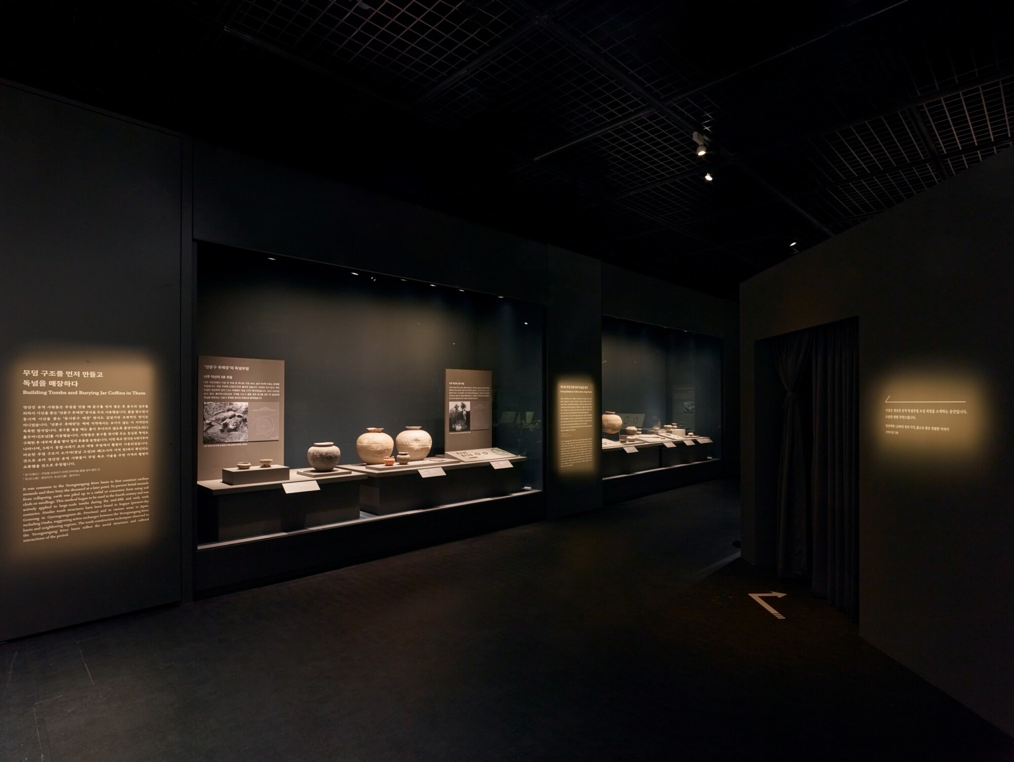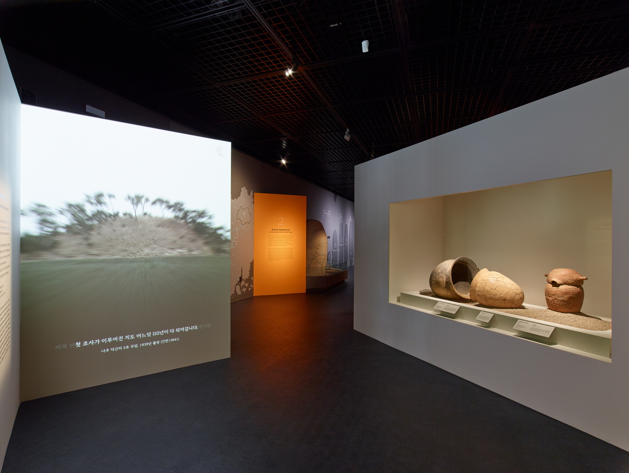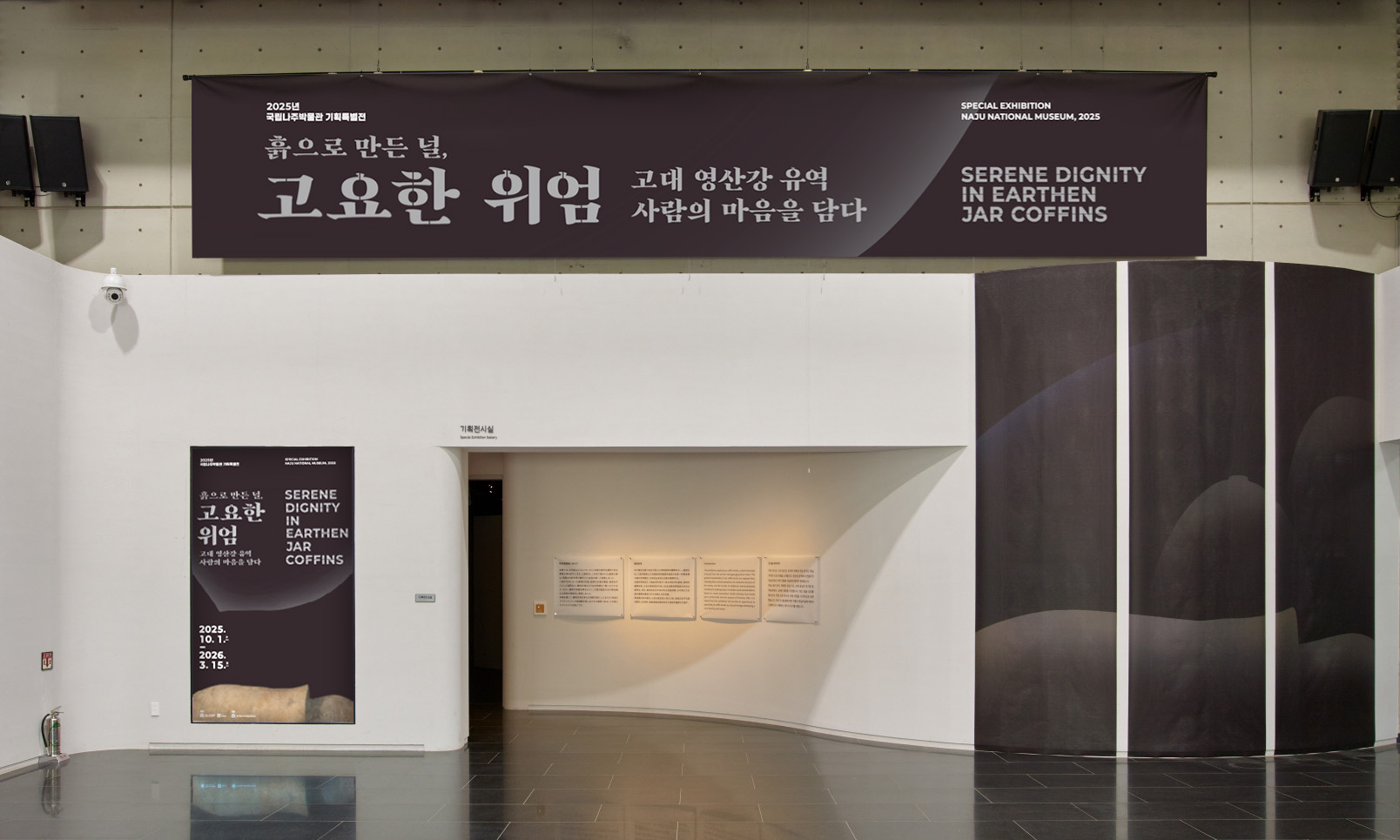 국립나주박물관 기획특별전 《흙으로 만든 널, 고요한 위엄》 ExhibitionGraphicMuseum Works/Exhibitions 날짜 2025.10.01 – 2026.03.15 장소 나주 Naju, Republic of Korea 클라이언트 국립나주박물관 고대 영산강 유역의 독특한 무덤 양식인 독널무덤의 조성 과정과 특징을 최근 발굴 성과를 중심으로 조명한 전시, 200여 점의 독널무덤이 지닌 고유한 가치가 '고요한 위엄'으로 전달될 수 있도록 구조, 색채, 조명을 복합적으로 활용한 공간 연출