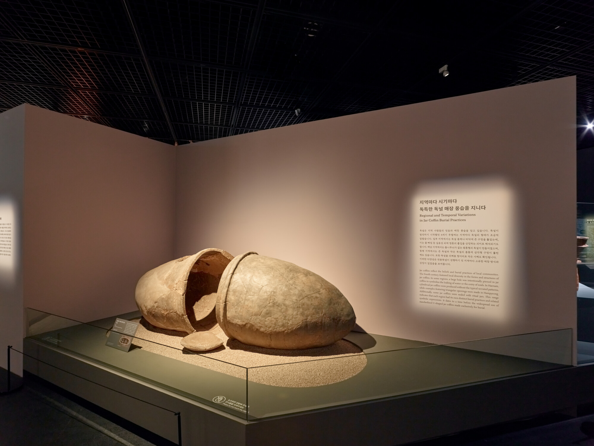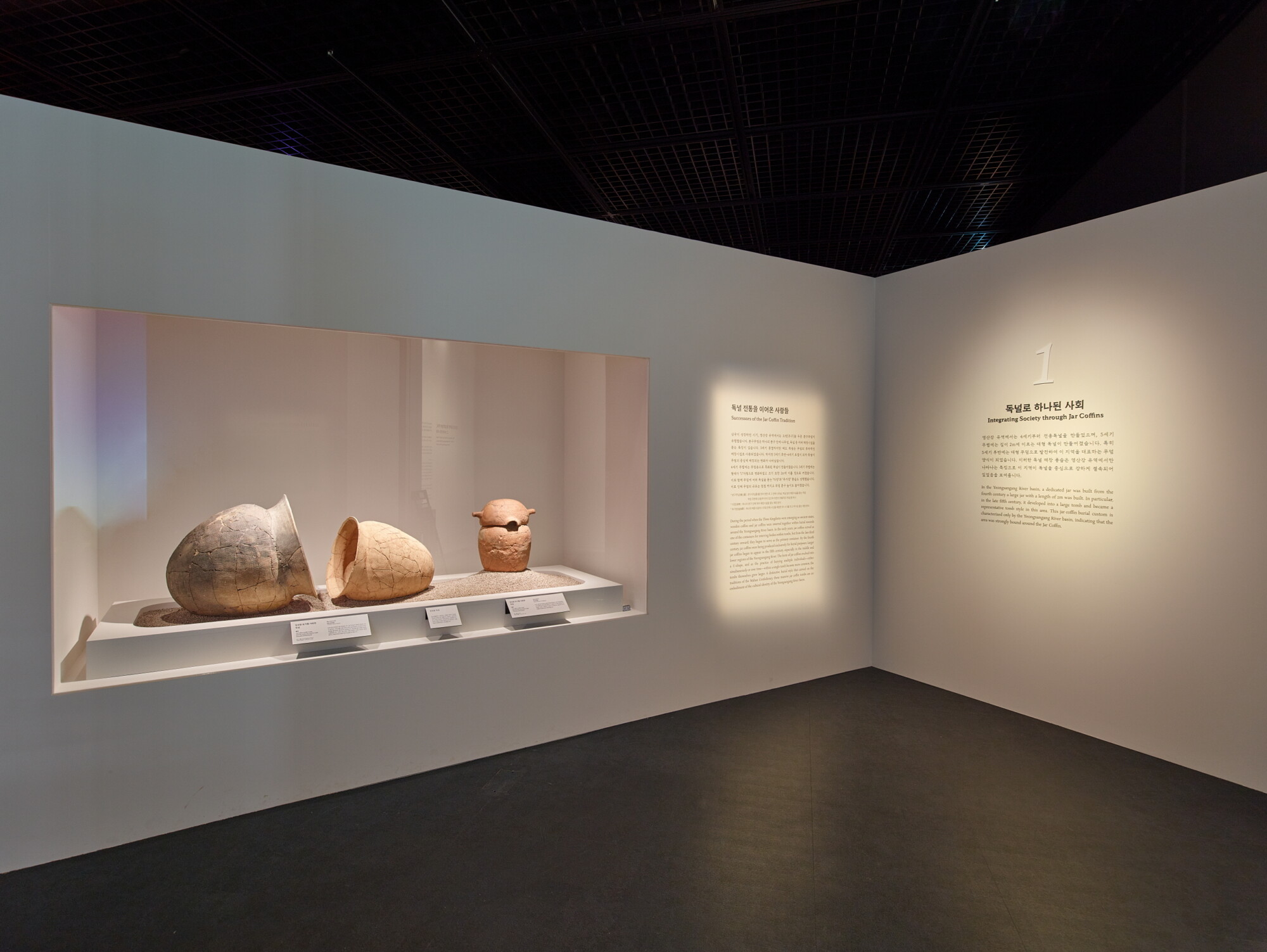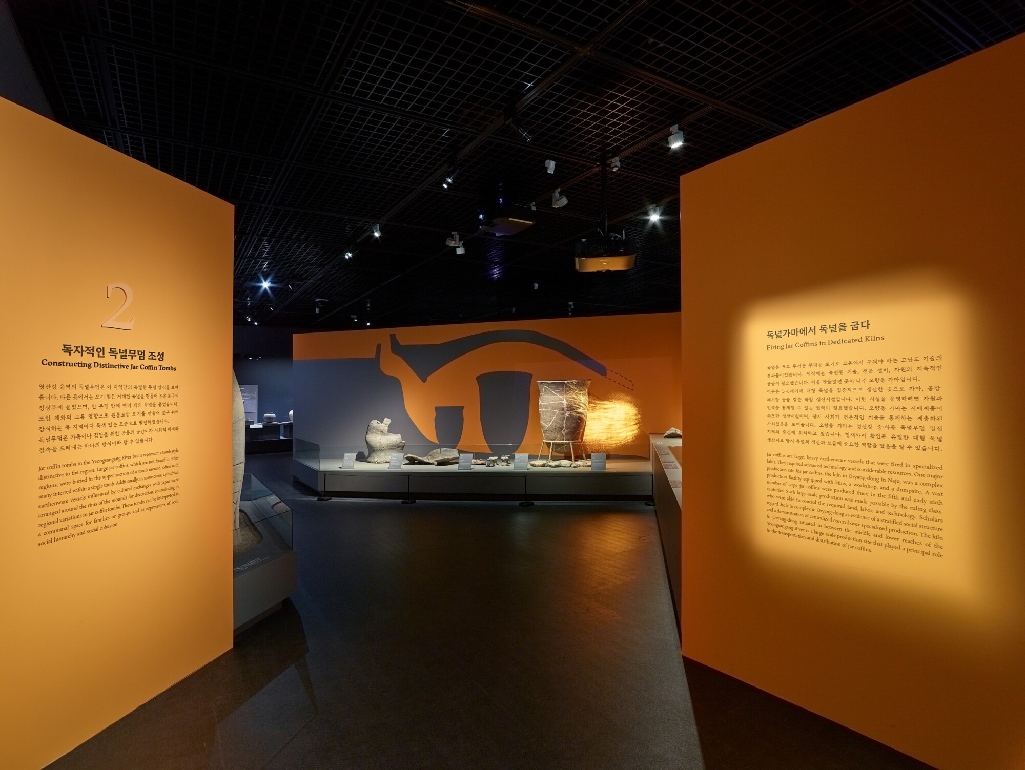 국립나주박물관 기획특별전 《흙으로 만든 널, 고요한 위엄》 ExhibitionGraphicMuseum Works/Exhibitions 날짜 2025.10.01 – 2026.03.15 장소 나주 Naju, Republic of Korea 클라이언트 국립나주박물관 고대 영산강 유역의 독특한 무덤 양식인 독널무덤의 조성 과정과 특징을 최근 발굴 성과를 중심으로 조명한 전시, 200여 점의 독널무덤이 지닌 고유한 가치가 '고요한 위엄'으로 전달될 수 있도록 구조, 색채, 조명을 복합적으로 활용한 공간 연출