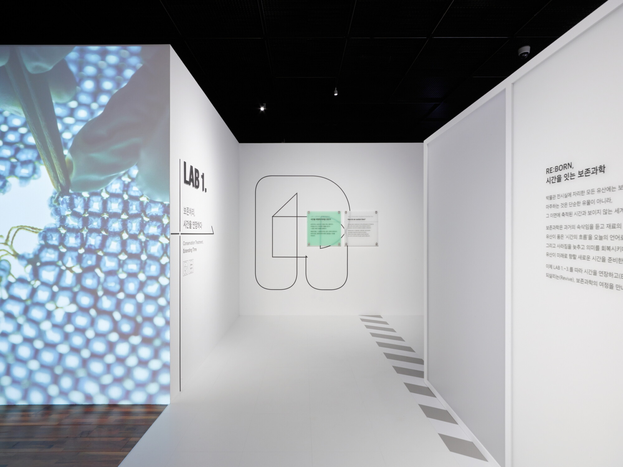 국립고궁박물관 개관 20주년을 맞이해 지금까지 축적해 온 보존과학의 성과를 되돌아보고 앞으로의 방향을 탐색하는 특별전 공간 연출, 문화유산을 다시 되살리는(RE:BORN) 과정을 보존처리·분석연구·복원복제 3가지 주제의 보존과학 실험실(LAB) 콘셉트로 풀어내 보존과학의 의미와 가치를 체감할 수 있도록 구현, 유수의 박물관 및 열린 수장고 프로젝트를 통해 차별화된 미학과 기술력을 보여주는 글로벌 스토리지 솔루션 브랜드 브런질(Bruynzeel)의 서랍 시스템을 반영하여 실험실 무드를 배가시키는 연출로 공간의 생동감 부여 및 TRIC, rebel9과의 협업을 통해 공간, 영상, 체험이 서로를 지지하는 전시 구축