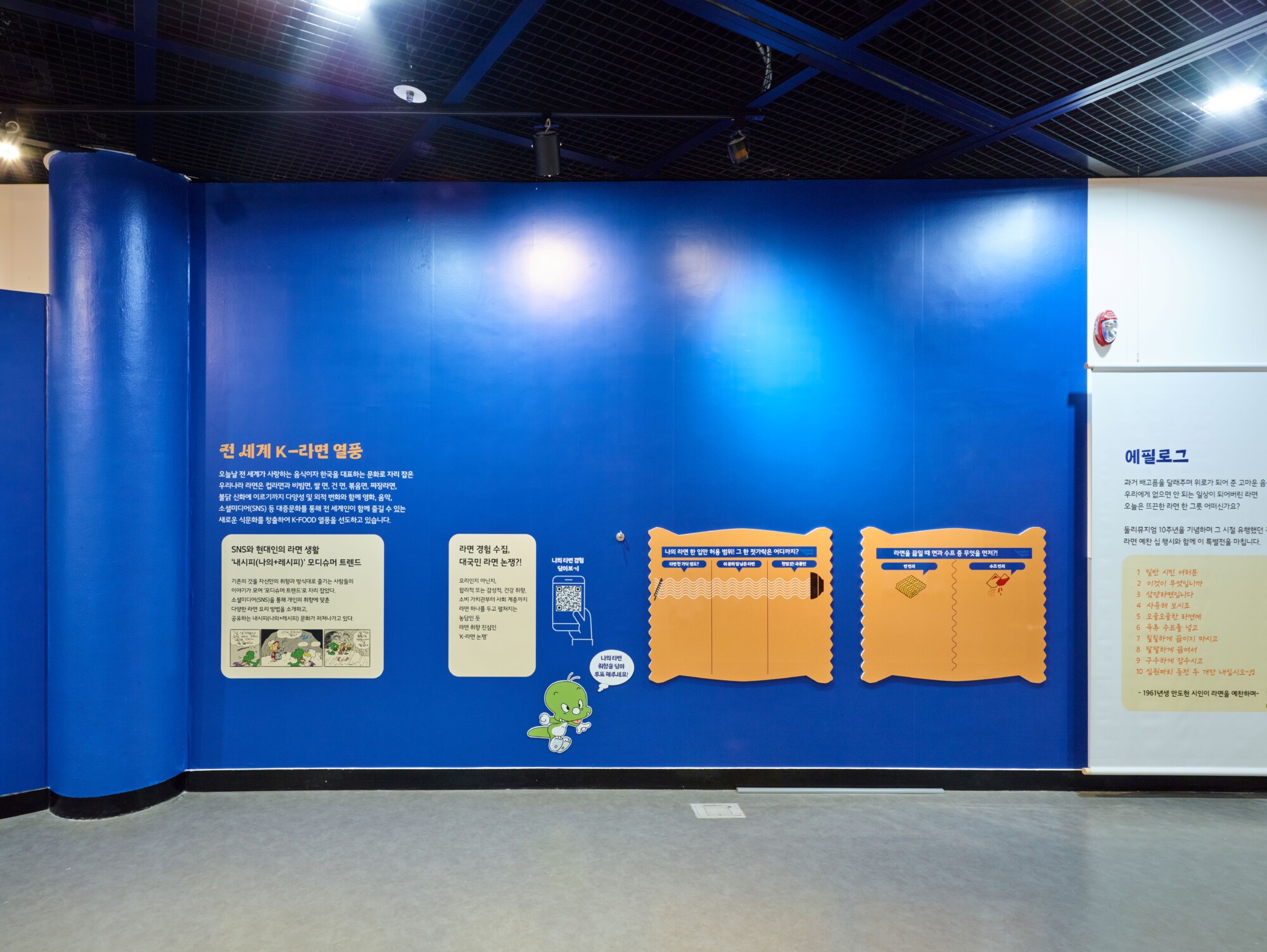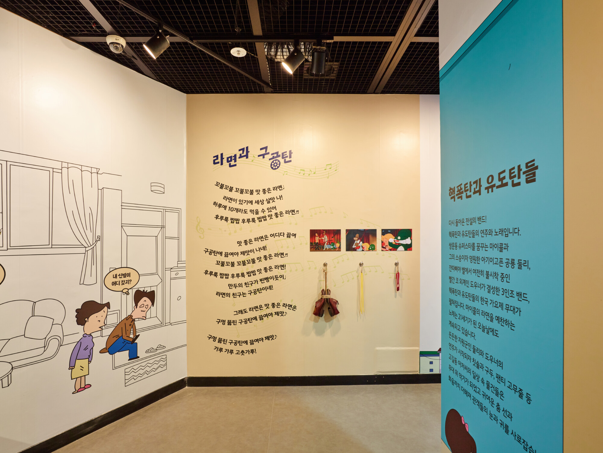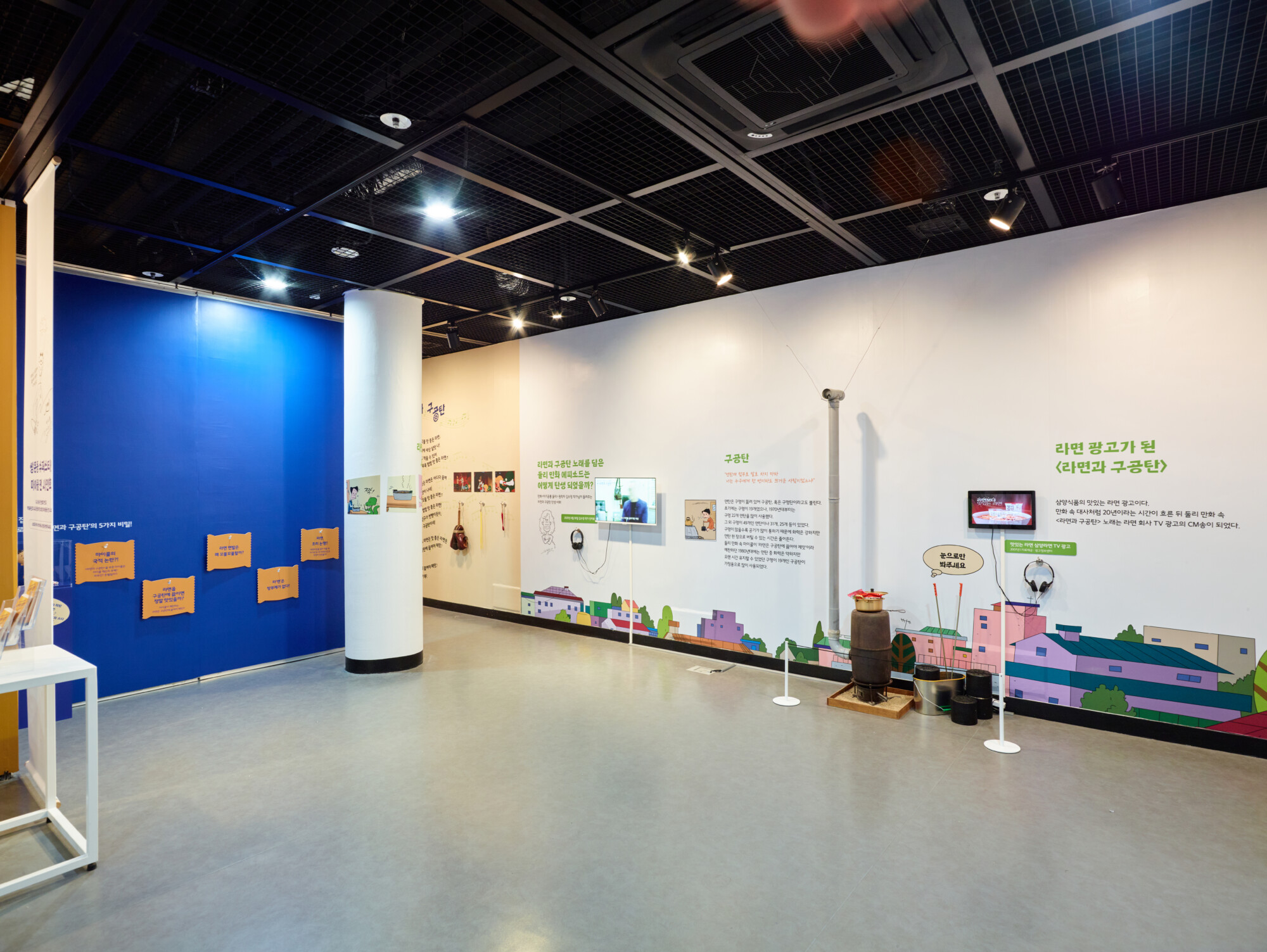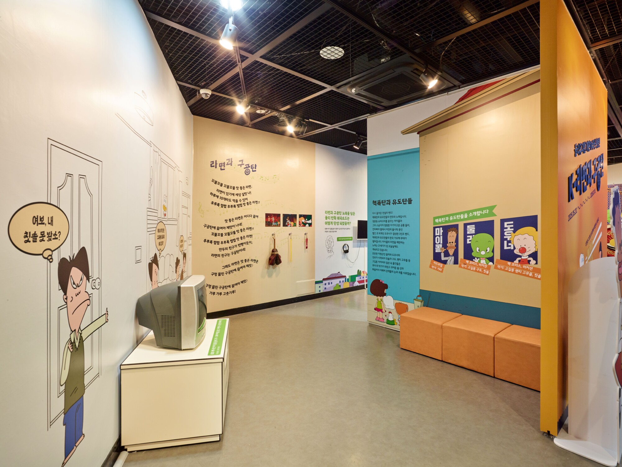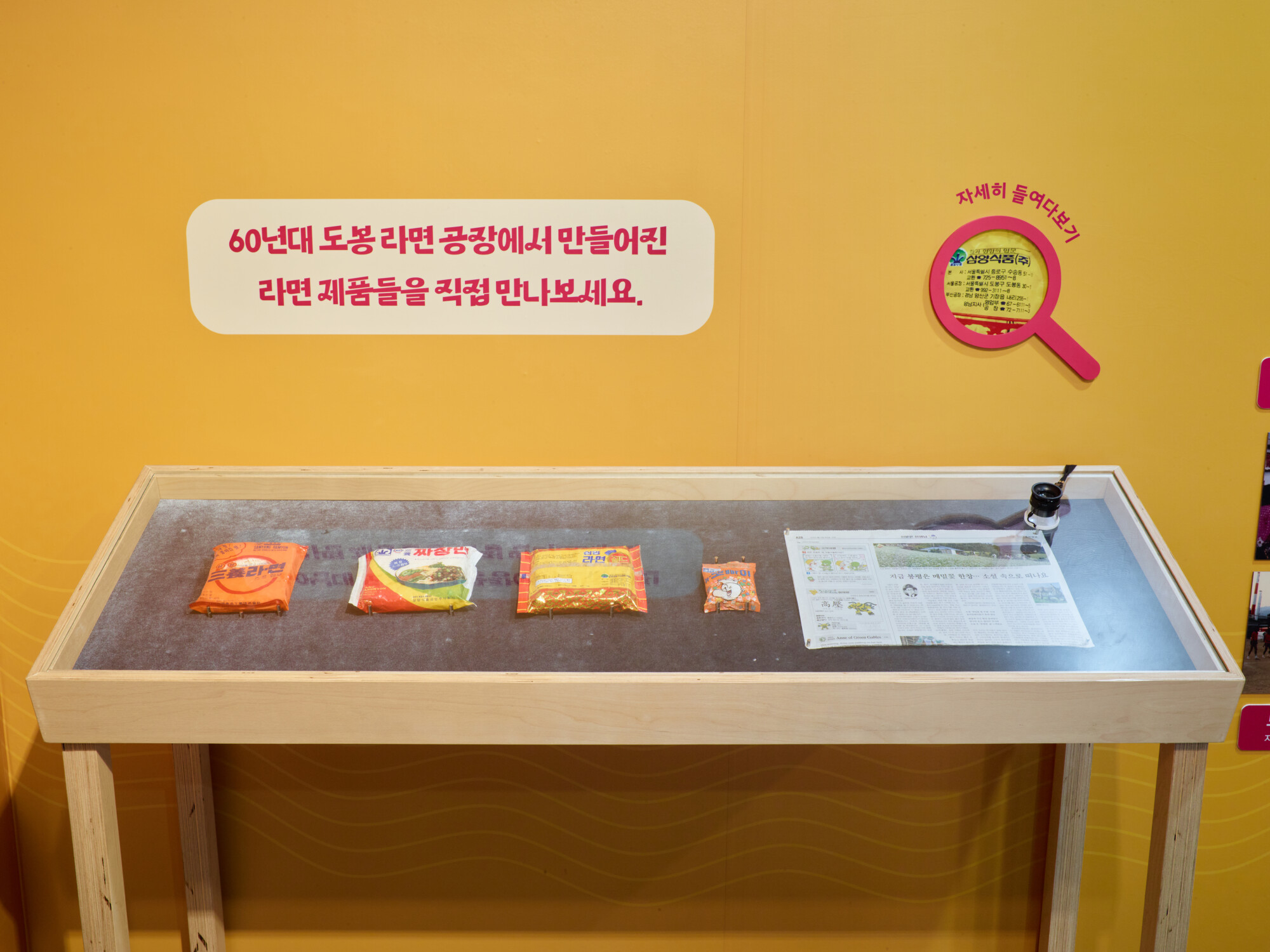 원조 K-캐릭터 아기공룡 둘리 만화를 매개로 한국 라면의 시초인 도봉 공장 이야기부터 오늘날 K-라면 열풍까지 조명한 전시, 과거 시대상을 보여주는 소품을 전략적으로 배치하여 세대간 공감대를 형성할 수 있는 전시 경험 제공