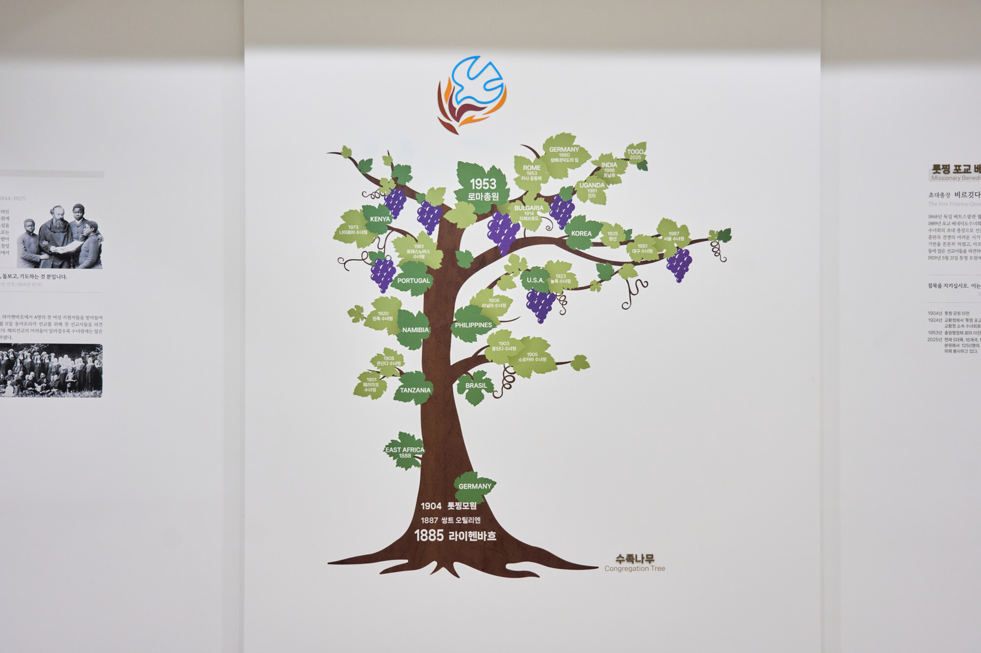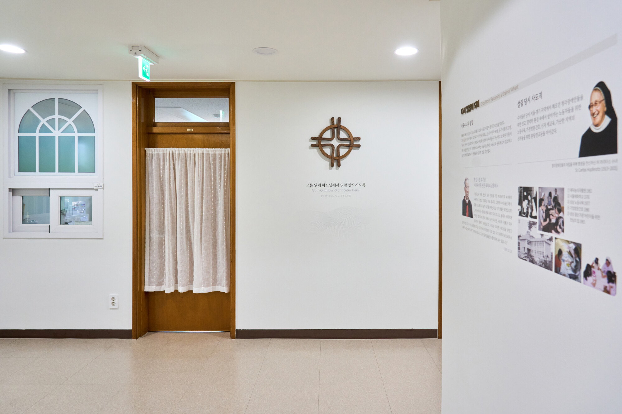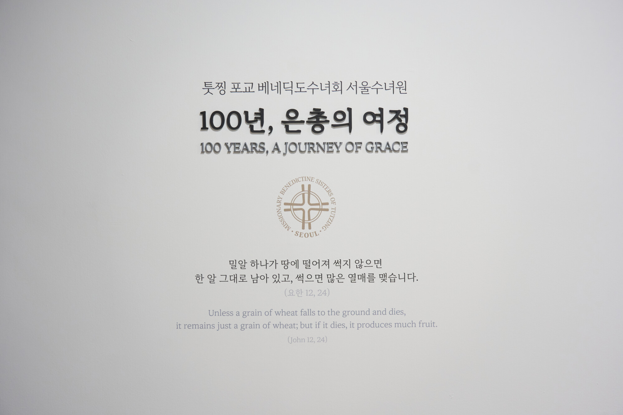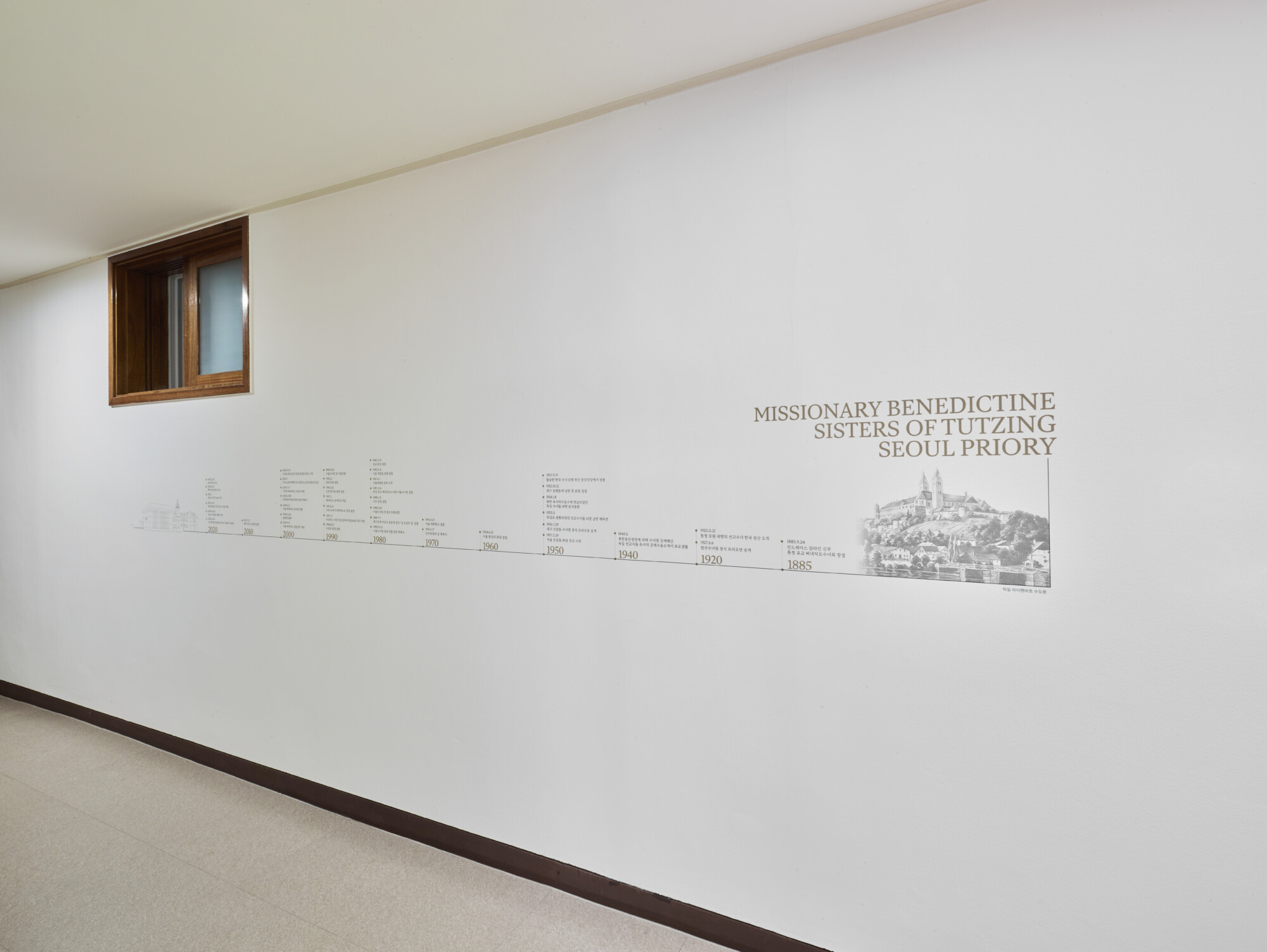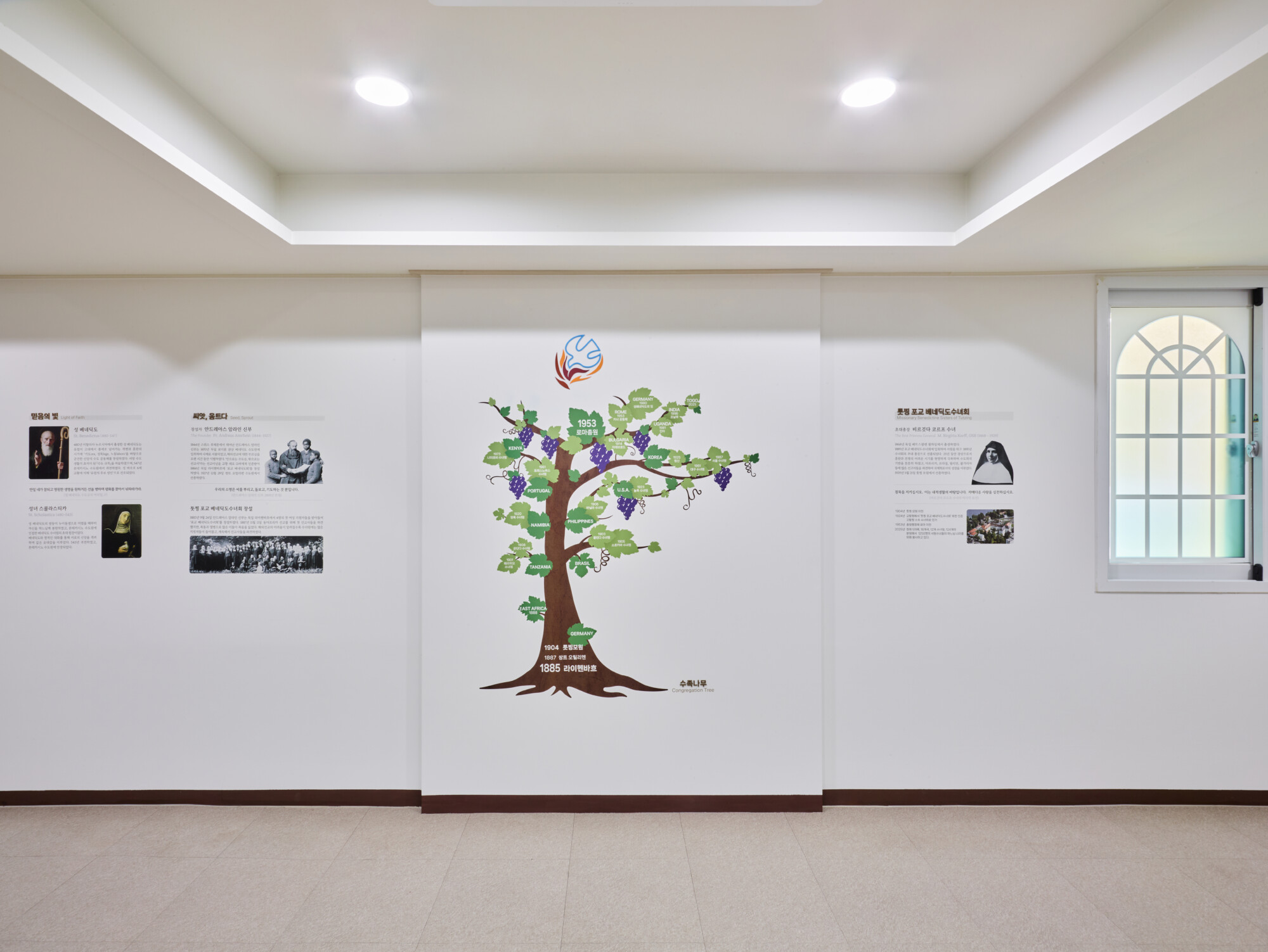 툿찡 포교베네딕도 수녀회 서울 수녀원 상설전시 《100년, 은총의 여정 》 ExhibitionFurnitureGraphicPermanent Works/Exhibitions 날짜 2025.10.31 장소 서울 Seoul, Republic of Korea 클라이언트 툿찡 포교베네딕도 수녀회 서울 수녀원 툿찡 포교 베네딕도 수녀회 서울 수녀원의 역사와 정체성을 담아낸 '100년, 은총의 여정' 상설전시 공간 구축, 수녀원의 벽면과 객실을 활용해 수녀회의 역사적 서사를 따라갈 수 있도록 구현하였으며 그래픽 연출에 월 프린팅 기법을 적용하여 생활 공간이자 전시 공간인 공간적 특성을 섬세하게 반영